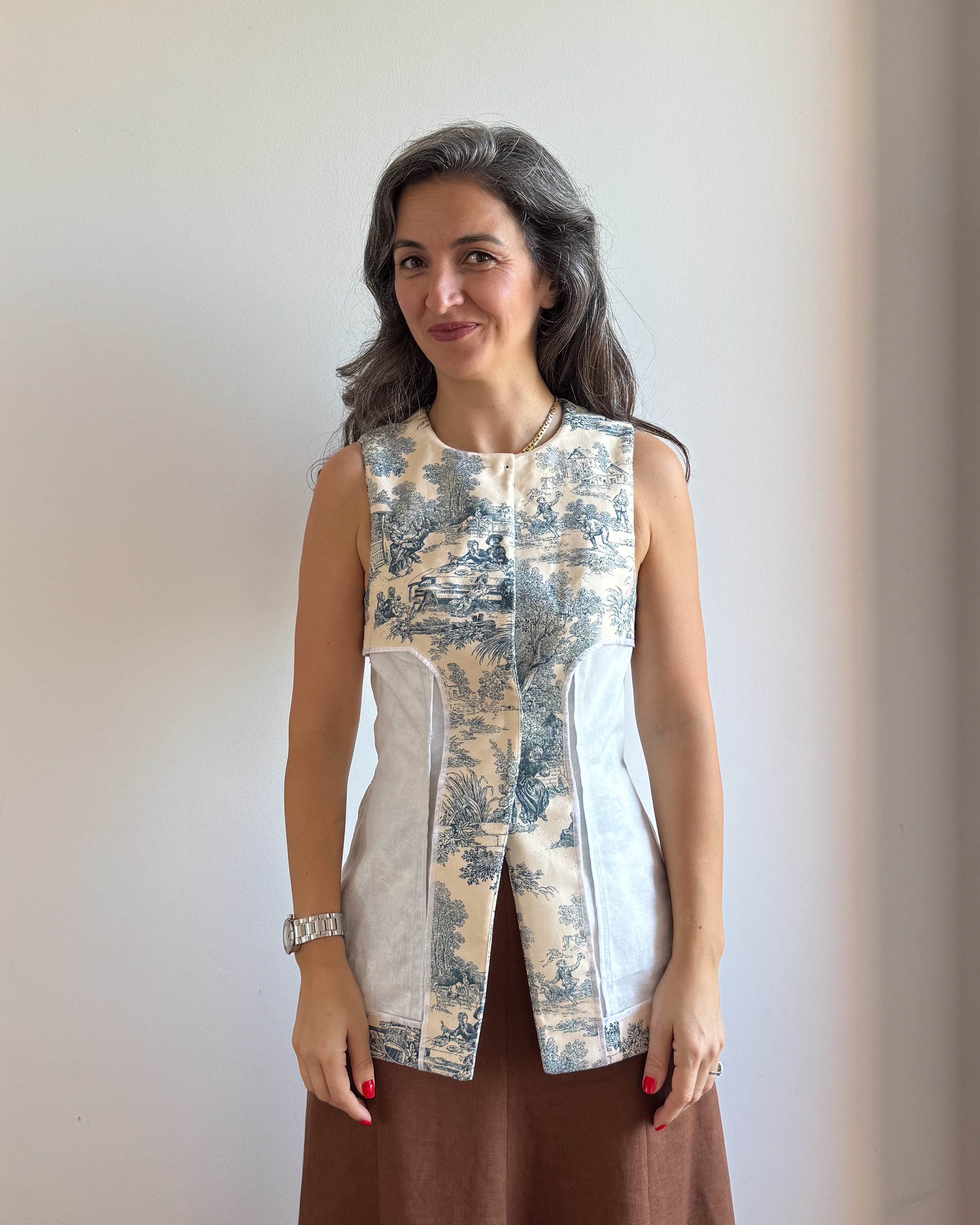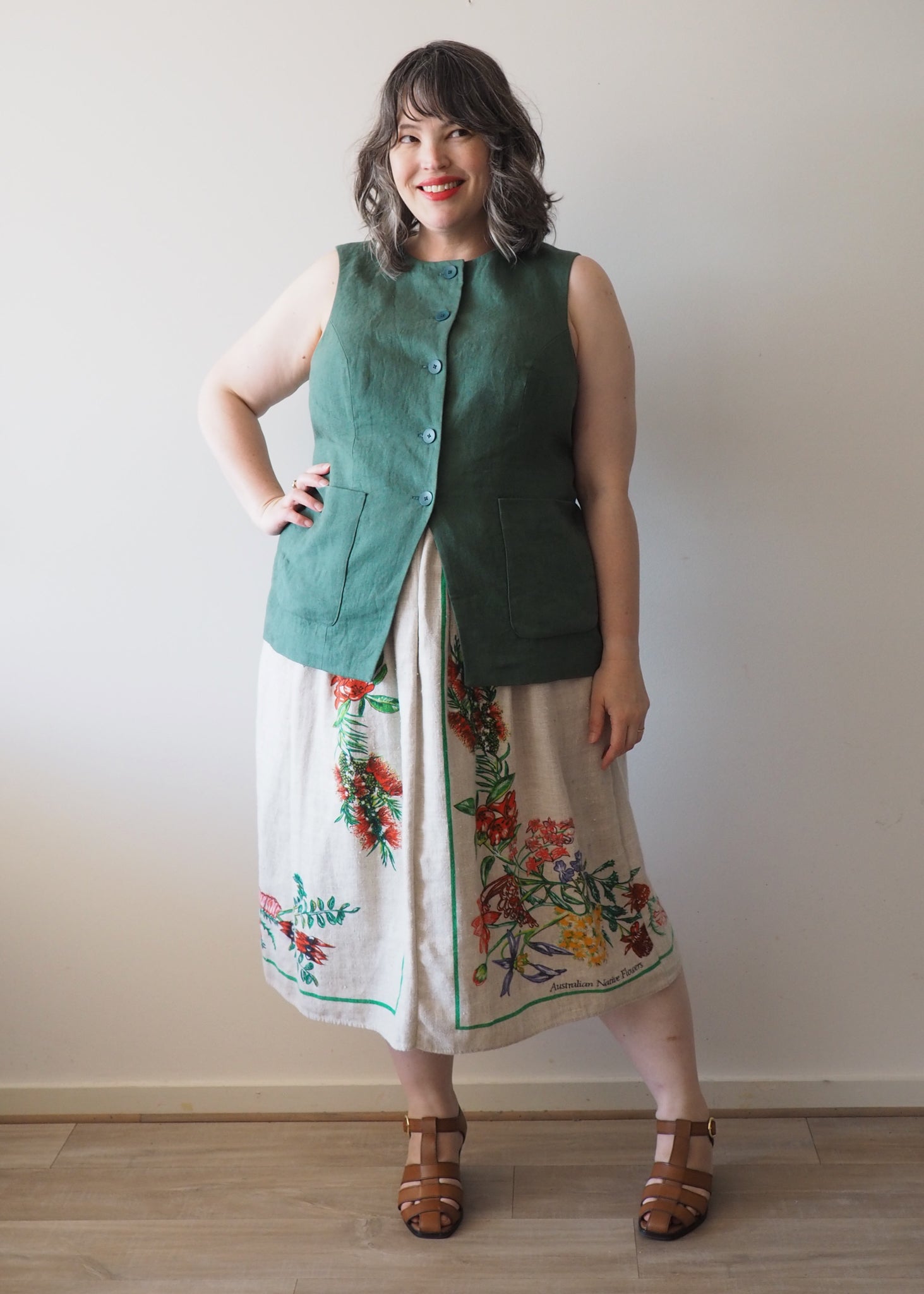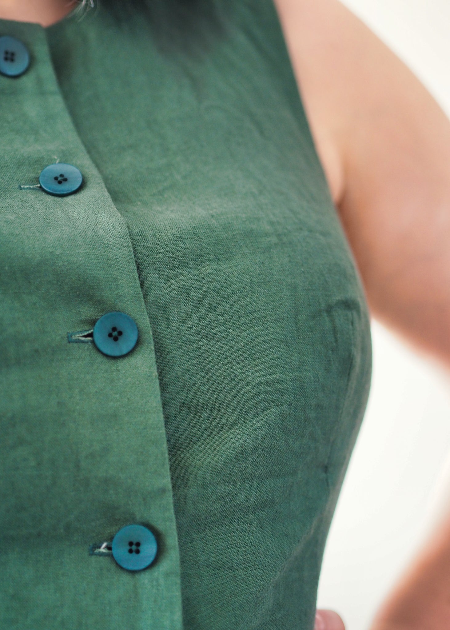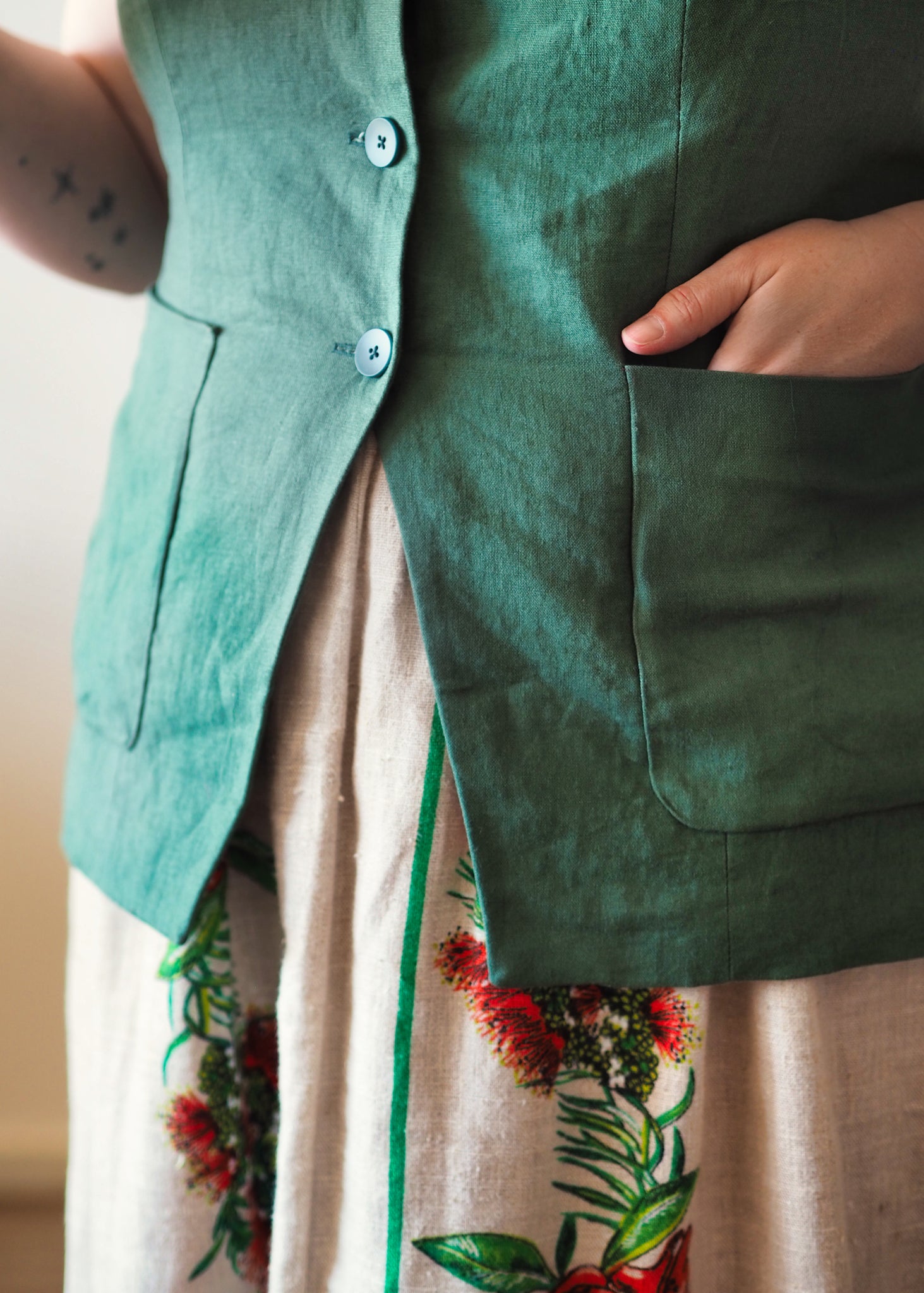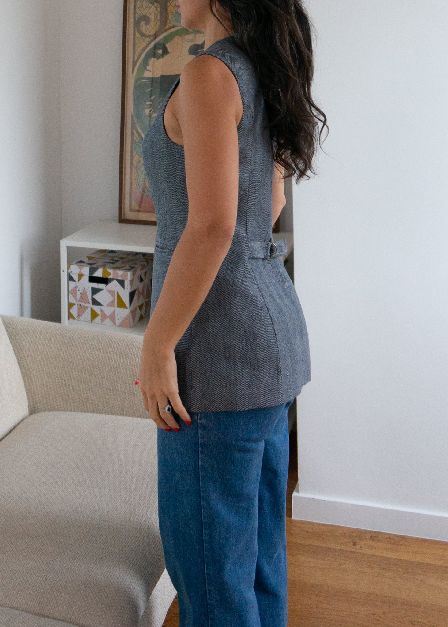 Love the tailored vest. I made it in a favorite long-stashed speckled cobalt Essex linen bland. I went with sz 44 and it fit perfectly without adjustments. I made a muslin in size 46 and found it was too big. I absolutely love the patch pocket instructions. But I had a hard time understanding how to sew the hem. I ended up with good results, but I will look for a video tutorial next time. I have more planned. I love the matching sets I've been seeing on Instagram.