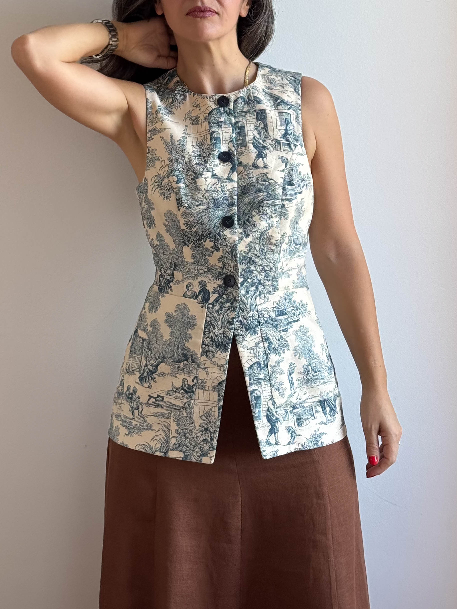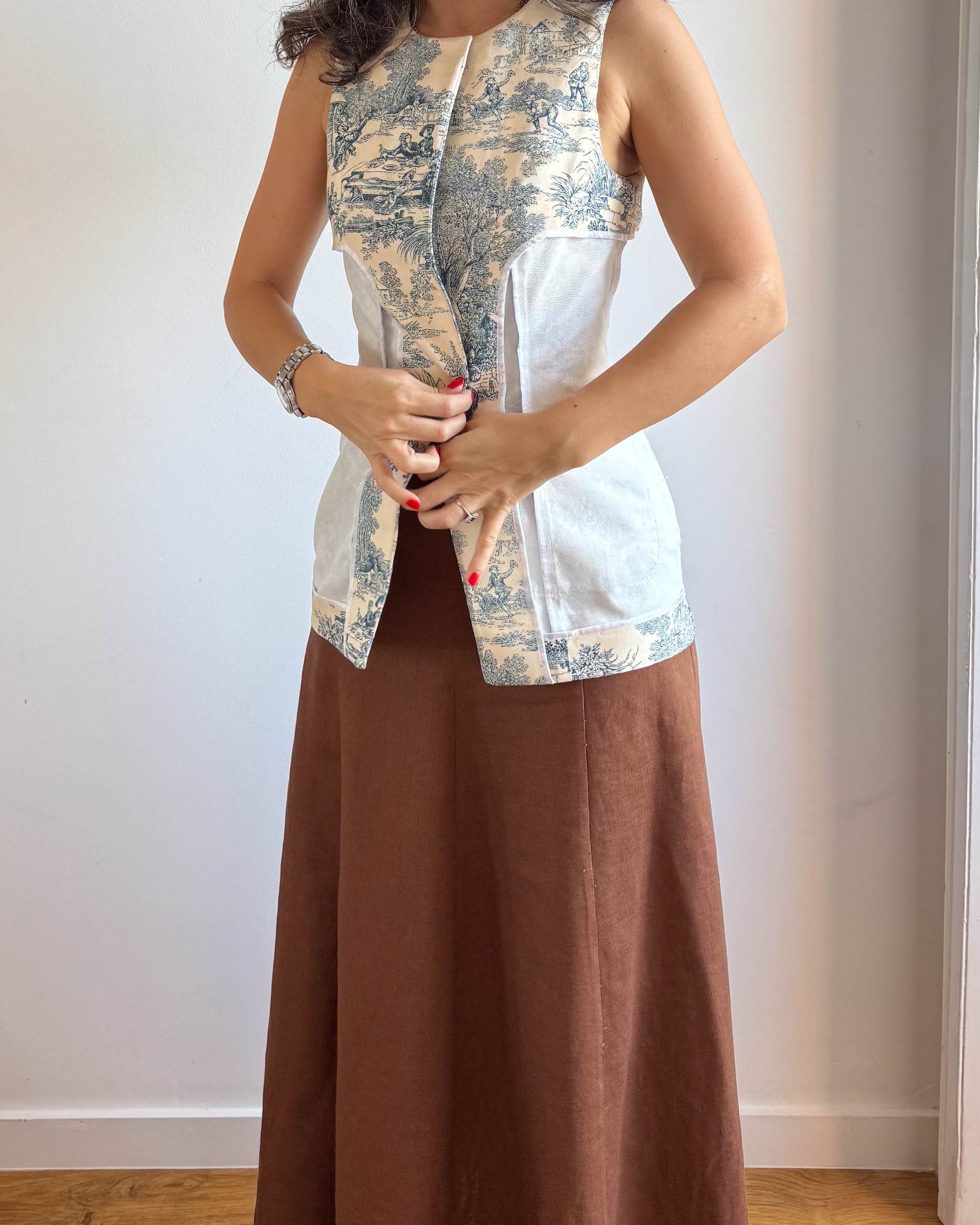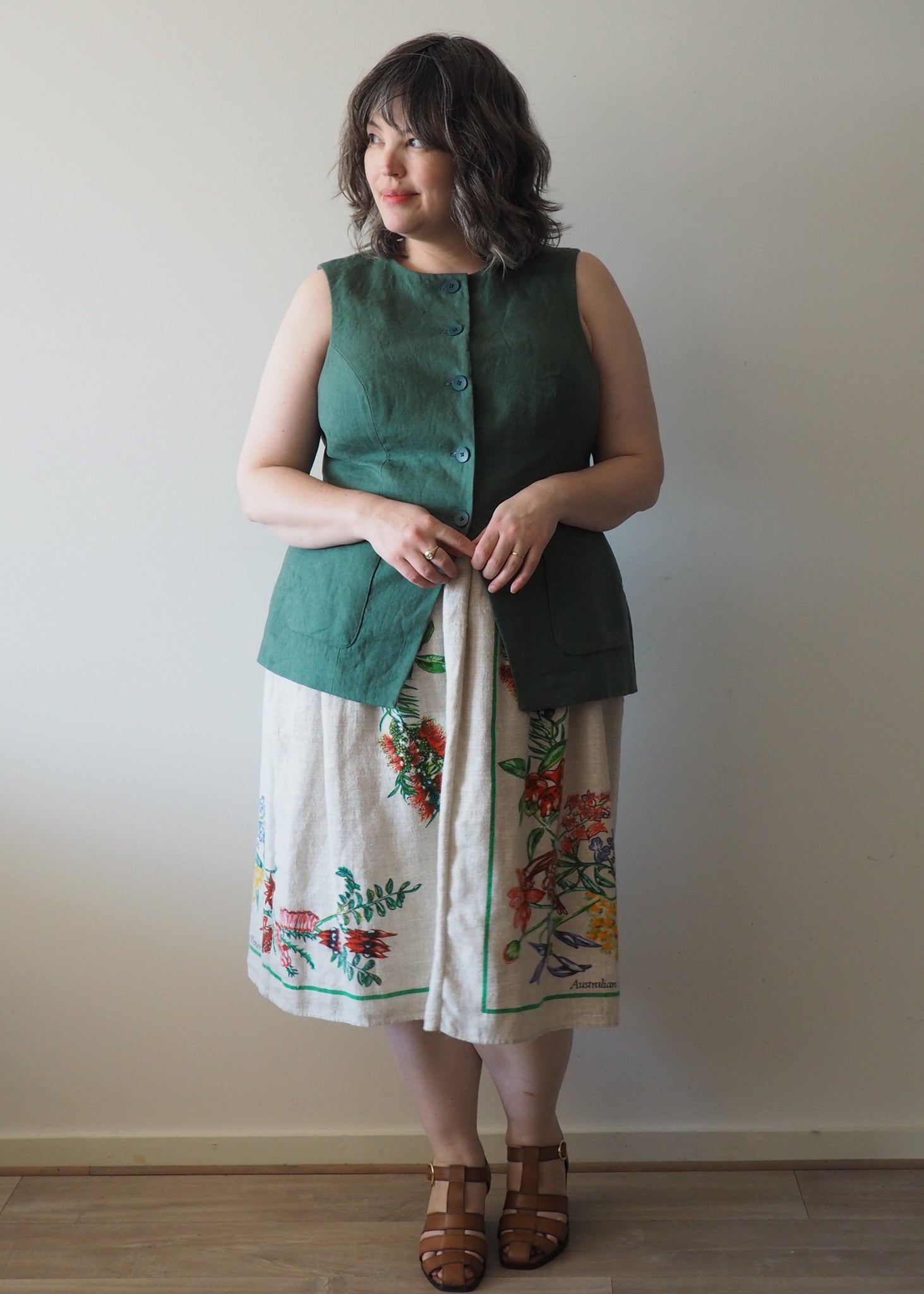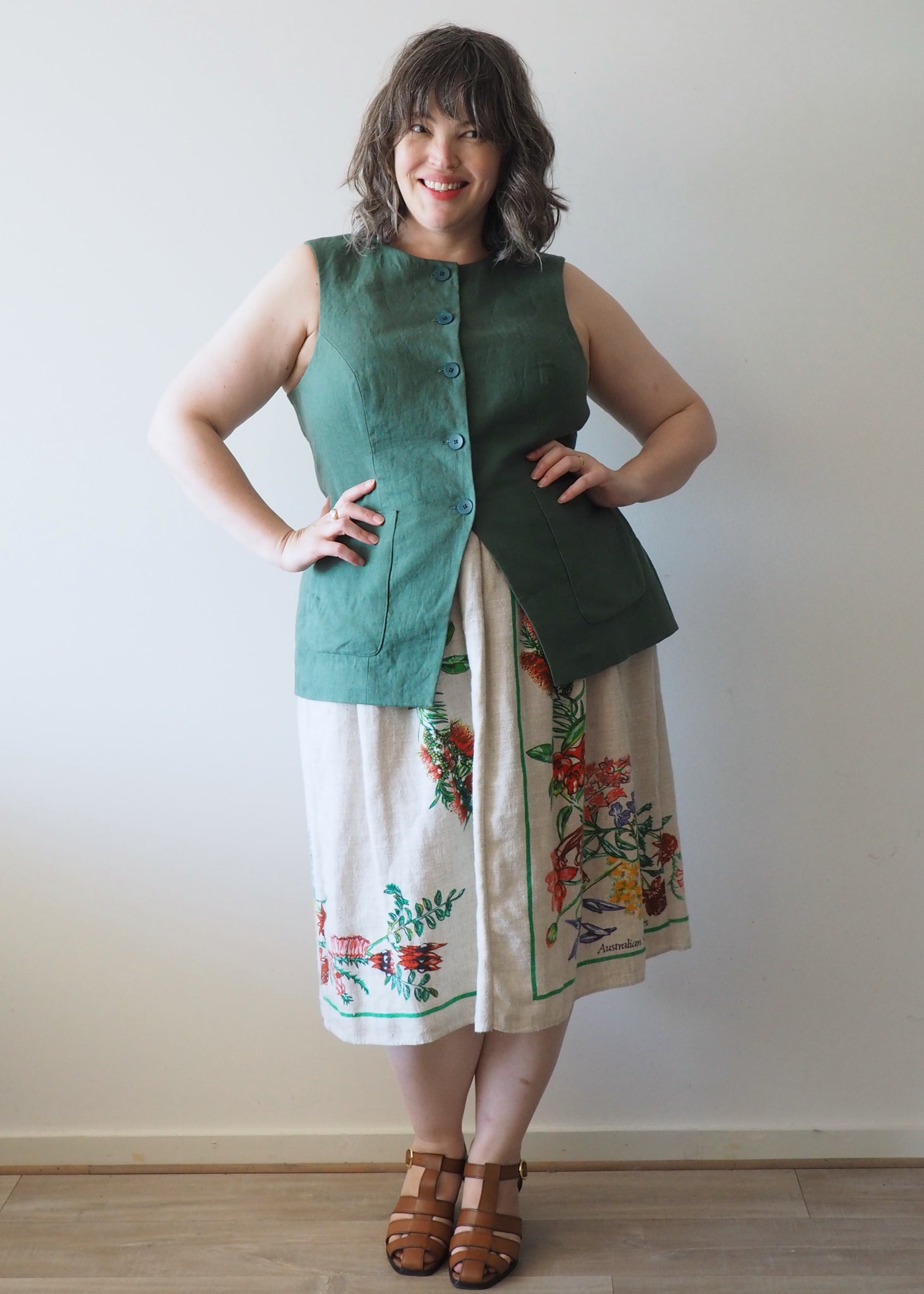 Love the tailored vest. I made it in a favorite long-stashed speckled cobalt Essex linen bland. I went with sz 44 and it fit perfectly without adjustments. I made a muslin in size 46 and found it was too big. I absolutely love the patch pocket instructions. But I had a hard time understanding how to sew the hem. I ended up with good results, but I will look for a video tutorial next time. I have more planned. I love the matching sets I've been seeing on Instagram.