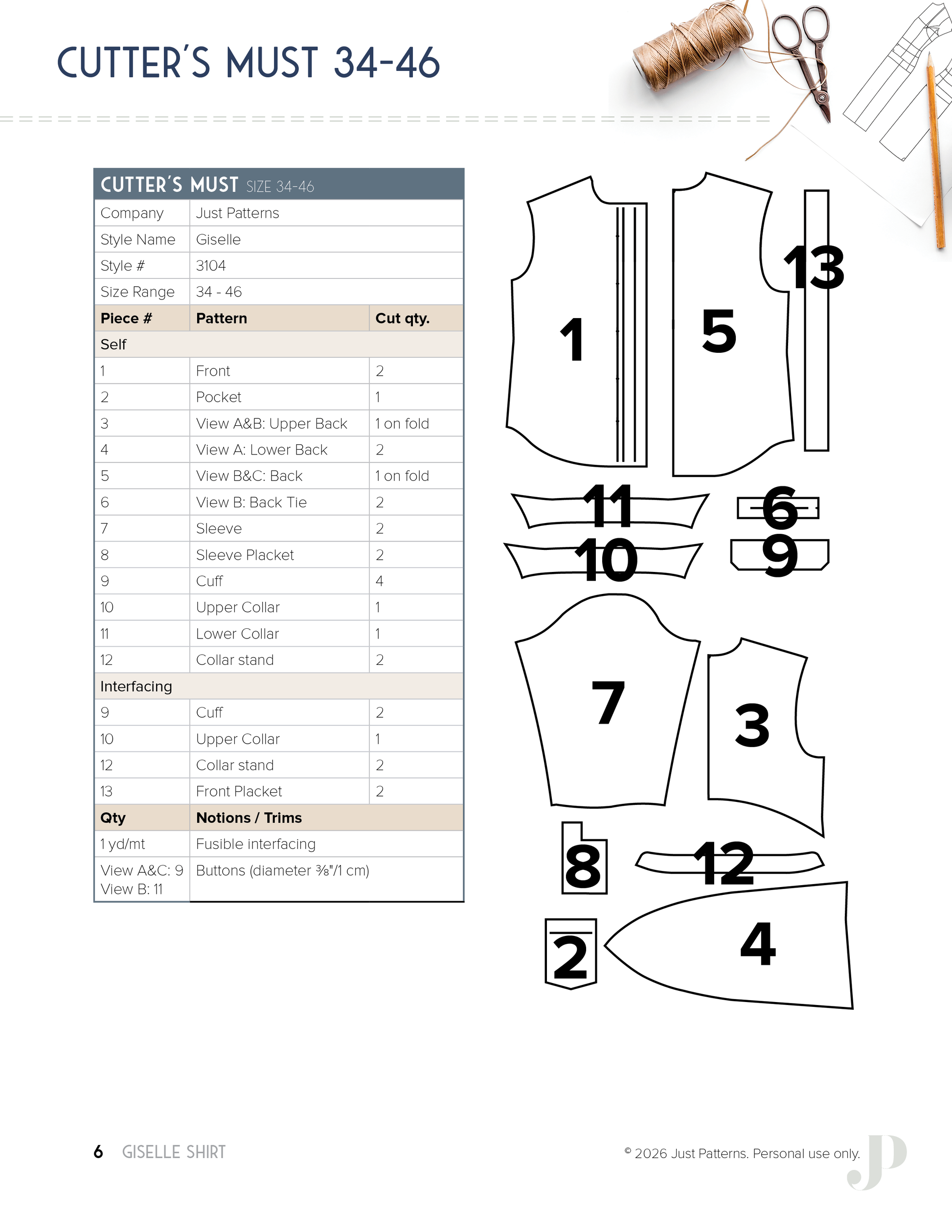 Meet the Giselle Shirt, a relaxed-fit shirt sewing pattern with three distinct back views: an open knot back, an adjustable tie back, and a timeless classic back. Available in sizes...