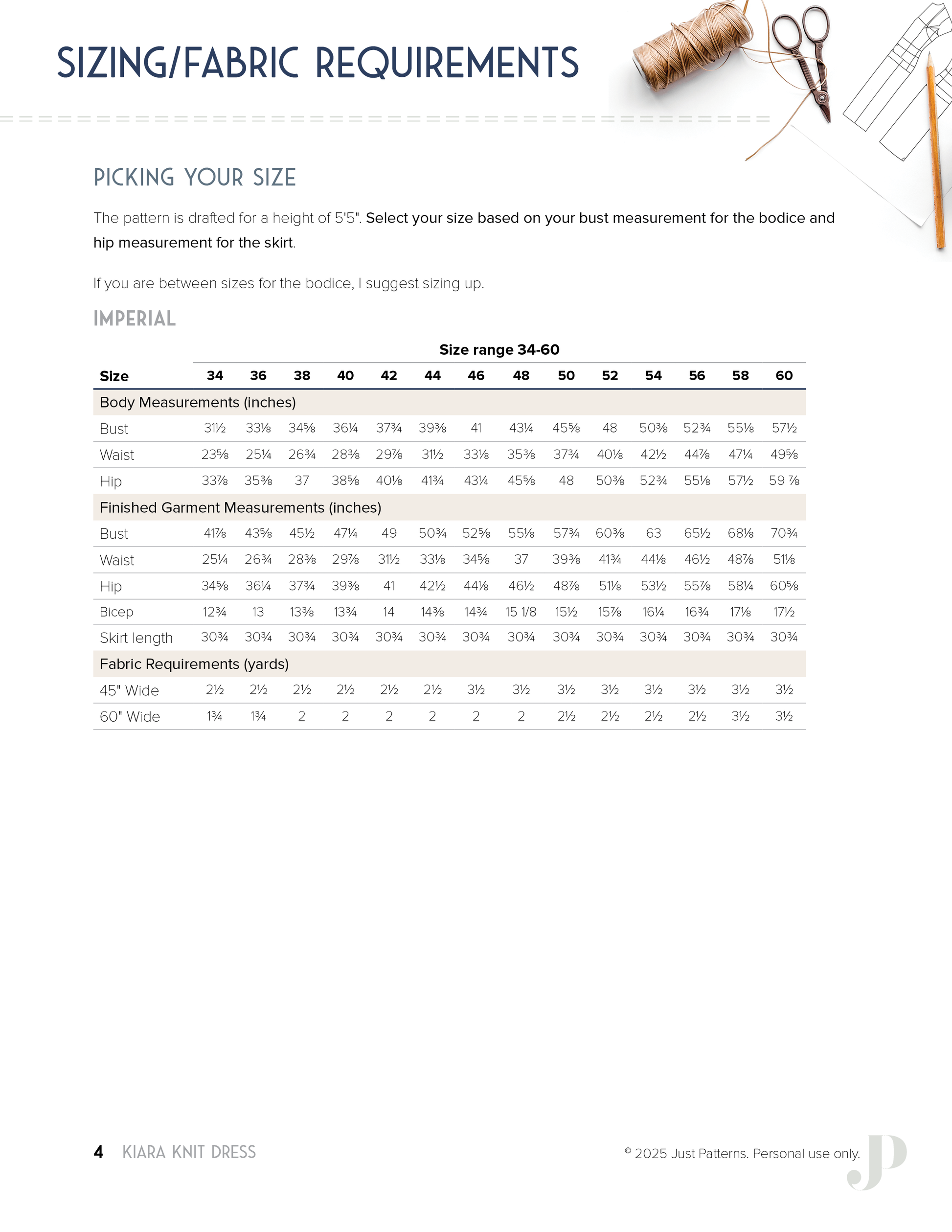 If your body measurements are at least one size outside of the size range, I grade up or down at no cost.