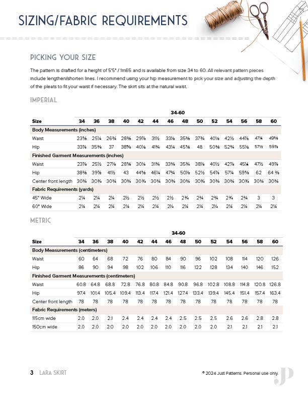 If your body measurements are at least one size outside of the size range, I grade up or down at no cost.